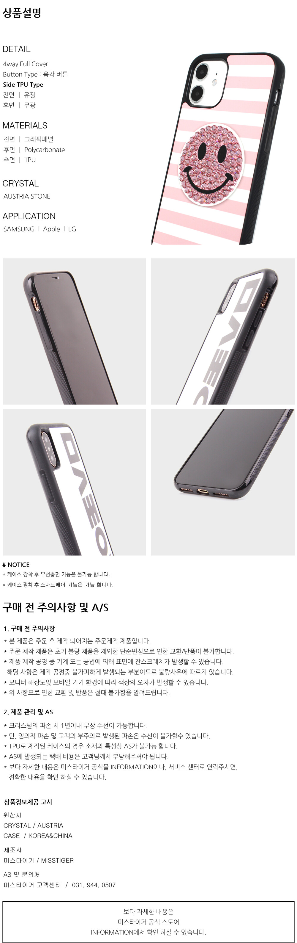 - 미스타이거의 크리스털로 제작된 제품은 크리스털 파손 시 1년이내 무상 수선이 가능합니다.