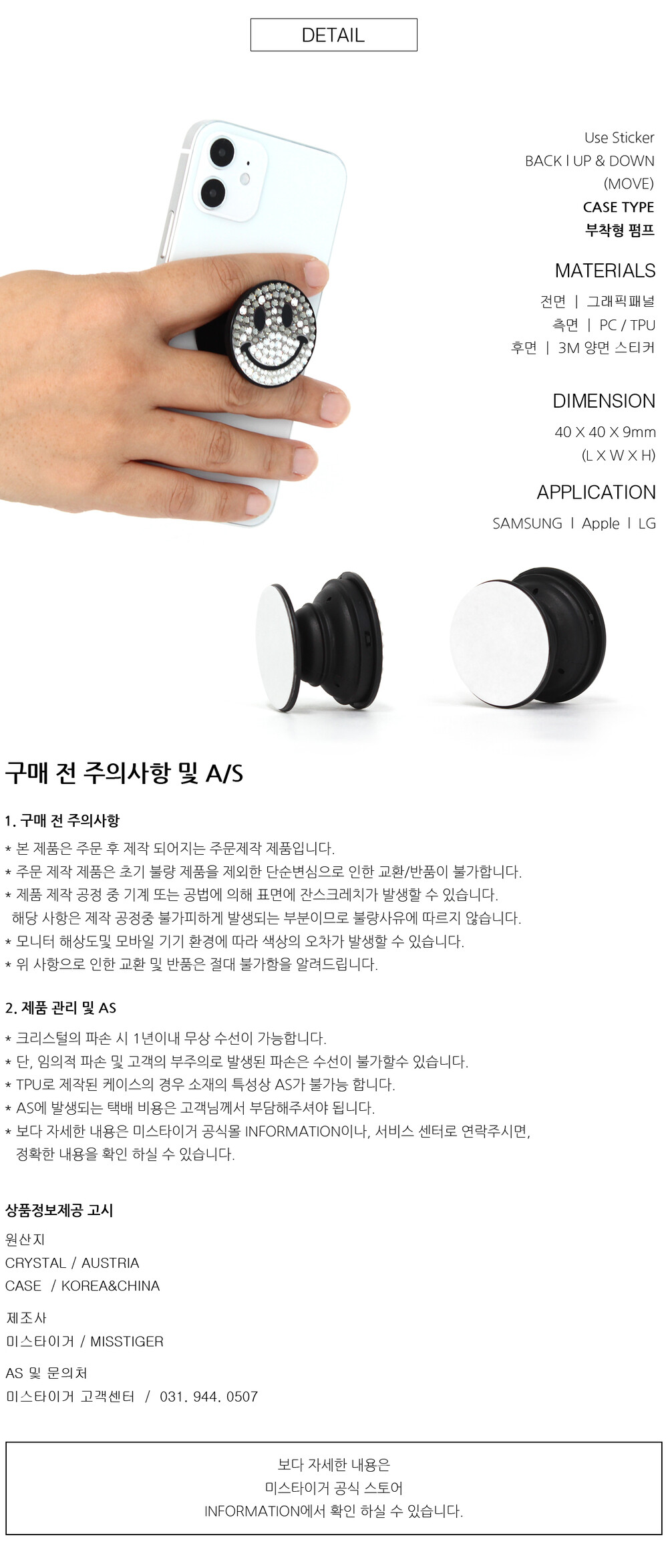 - 보다 자세한 내용은 미스타이거 공식몰 INFORMATION이나, 서비스 센터로 연락 주시면,